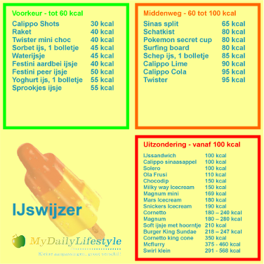 Eindelijk is het dan zover, de zomer is ook in Nederland aangebroken! Niets is zo lekker op een warme dag als een verkoelend ijsje. Zonder dat we het weten, kunnen ijsjes veel in calorieën verschillen. Wij hebben daarom de ijsjes voor u ingedeeld in 3 categorieën; Voorkeur, Middenweg en Uitzondering. Zo ziet u in één opslag in welke categorie uw favoriete ijs thuis hoort!